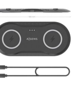 AISENS® – Cargador inalámbrico USB-C de 15W 2 en 1 para Móvil Auriculares, Negro