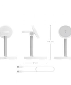 - Compatible con todos los móviles y auriculares con estuche de carga que soportan protocolo Qi. Nota: El móvil debe ser compatible con Qi2 o contar con una funda magnética para poder adherirse magnéticamente de forma segura y permitir la carga inalámbrica sin riesgo de caída. Para carga inalámbrica a un reloj, solo es compatible con Apple Watch.