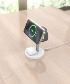 - Permite cargar simultáneamente tu smartphone, Apple Watch y auriculares con estuche de carga. Ofrece una potencia de hasta 15W para una carga rápida y eficiente.