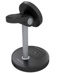 - Este cargador inalámbrico permite cargar varios dispositivos al mismo tiempo. Su diseño con soporte inclinado facilita el uso manos libres durante la carga. Solo coloca tu teléfono y se mantendrá cargando automáticamente. Nota: El móvil debe ser compatible con Qi2 o contar con una funda magnética para poder adherirse magnéticamente de forma segura y permitir la carga inalámbrica sin riesgo de caída.
