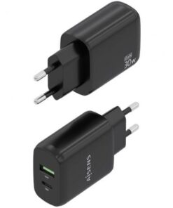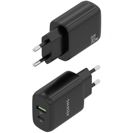 AISENS – CARGADOR GaN 30W, 1xUSB-C PD3.0 QC4.0, 1xUSB-A QC3.0, NEGRO
