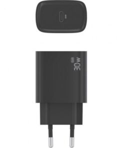 Cargador GaN USB-C 30W para cargar portátiles, móviles, cámaras y tablets etc. Diseño muy elegante, moderno y práctico.