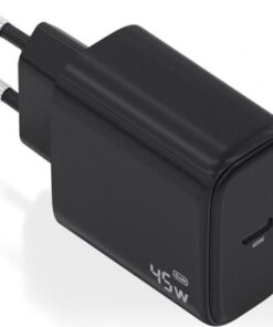 Cargador GaN USB-C 45W para cargar portátiles, móviles, cámaras y tablets etc. Diseño muy elegante, moderno y práctico.