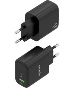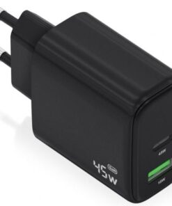 A110-0972 – Cargador GaN 45W, 1xUSB-C PD3.0 QC4.0, 1xUSB-A QC3.0, Negro