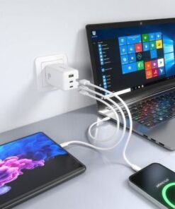 Cargador GaN USB-C 100W para cargar portátiles, móviles, cámaras y tablets etc. Diseño muy elegante, moderno y práctico.