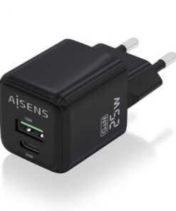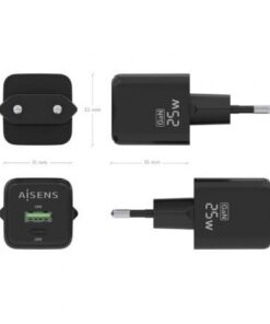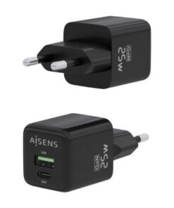 ASCH-25W2P015-BK – Cargador GAN 25W, 1xUSB-C PD3.0 QC4.0, 1xUSB-A QC3.0, Negro