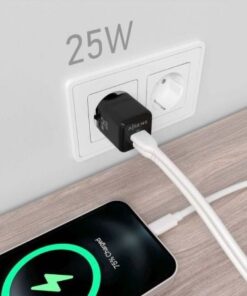 - Cargador GaN USB-C 25W para cargar portátiles, móviles, cámaras y tablets etc. Diseño muy elegante, moderno y práctico.