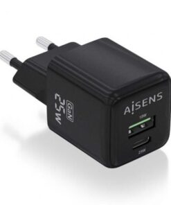 ASCH-25W2P015-BK – Cargador GAN 25W, 1xUSB-C PD3.0 QC4.0, 1xUSB-A QC3.0, Negro
