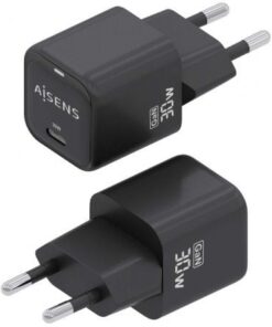 Cargador de pared gan aisens asch-30w1p019-bk/ 1xusb tipo-c/ 30w