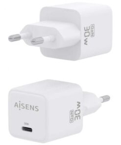 AISENS – CARGADOR GaN 30W, 1xUSB-C PD3.0 QC4.0, BLANCO