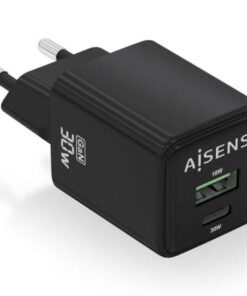 AISENS – CARGADOR GaN 30W, 1xUSB-C PD3.0 QC4.0, 1xUSB-A QC3.0, NEGRO