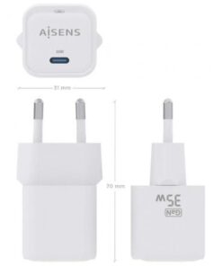 AISENS – CARGADOR GaN 35W, 1xUSB-C PD3.0 QC4.0, BLANCO