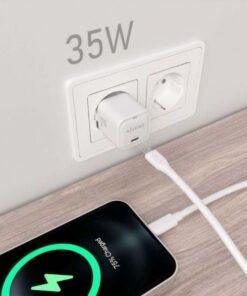 Cargador GaN USB-C 35W para cargar portátiles, móviles, cámaras y tablets etc. Diseño muy elegante, moderno y práctico.