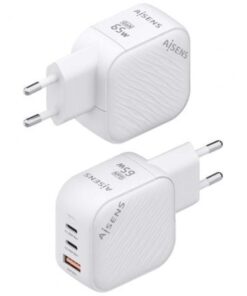 AISENS – CARGADOR GaN 65W, 2xUSB-C PD3.0 QC4.0, 1xUSB-A QC3.0, BLANCO