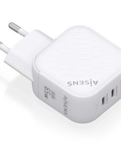 AISENS – CARGADOR GaN 65W, 2xUSB-C PD3.0 QC4.0, 1xUSB-A QC3.0, BLANCO