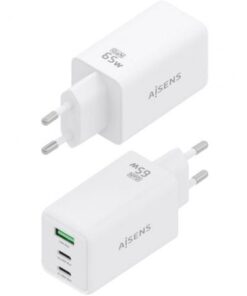 ASCH-65W3P072-W – Cargador GaN 65W, 2xUSB-C PD3.0 QC4.0, 1xUSB-A QC3.0, Blanco