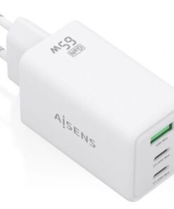ASCH-65W3P072-W – Cargador GaN 65W, 2xUSB-C PD3.0 QC4.0, 1xUSB-A QC3.0, Blanco