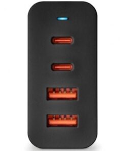 - Cargador de pared con 2 salidas USB-C (PD & PPS) y 2 salidas USB-A QC 3.0 de 100W de potencia máxima para cargar dispositivos de manera rápida y eficiente.