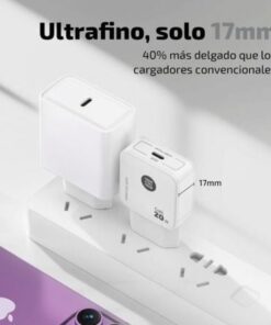Cargador ultrarrápido GaN Power Delivery 3.0 (PD) 20W, color blanco.