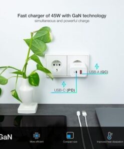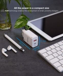 ‘Cargador de Pared GaN USB-C/PD + USB-A/QC 45W, Blanco