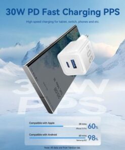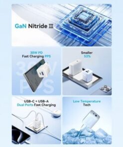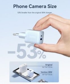 Cargador de pared gan vention feql0-eu/ 1xusb tipo-c/ 1xusb/ 30w