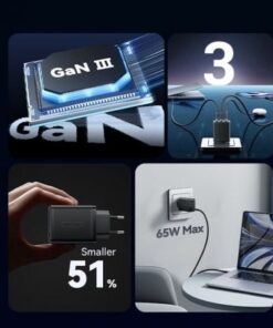 Cargador GaN de 3 puertos USB (C + C + A) (65W/65W/60W)