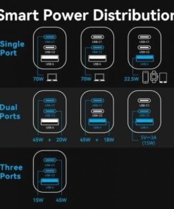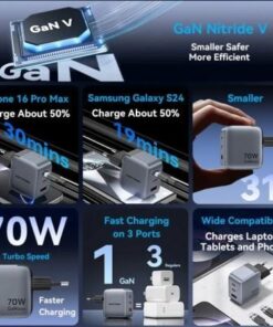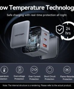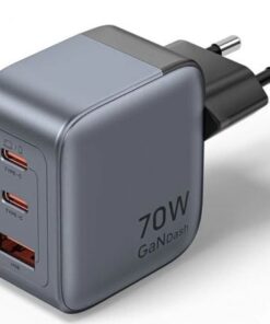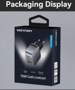 Cargador de pared gan vention fexh0-eu/ 2xusb tipo-c/ 1xusb/ 70w