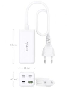 AISENS – CARGADOR SOBREMESA GaN 100W, 3xUSB-C PD3.0 QC4.0 QC5.0, 1xUSB-A QC3.0, BLANCO