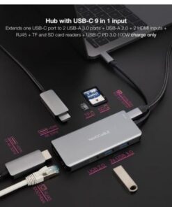Docking tipo-c nanocable 10.16.1009/ 3xusb/ 2xhdmi 4k/ 1xrj45/ 1xlector tarjetas/ 1xusb tipo-c pd/ gris