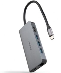 USB-C 8 en 1, USB-C 3.1 a 3 USB-A 3.0 + HDMI 4K a 60 Hz + USB-C PD + RJ45 1 Gbps + TF + SD, aluminio, gris, 18 cm