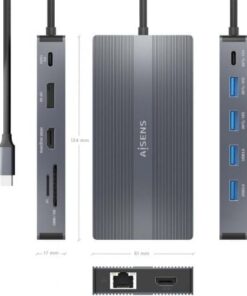 AISENS – USB-C DOCK 12 EN 1, USB-C A 2xHDMI, 1xDISPLAYPORT, 1xRJ45, 4xUSB-A, 1xUSB-C, 1xUSB-C PD, 1xSD, 1xMICRO SD, GRIS, 20CM