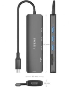 AISENS – USB-C DOCK 6 EN 1, USB-C A 1xHDMI, 3xUSB-A, 1xSD, 1xMICRO SD, GRIS, 15CM