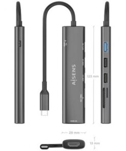 AISENS – USB-C DOCK 7 EN 1, USB-C A 1xHDMI, 2xUSB-A USB2.0, 1xUSB-A USB3.0, 1xUSB-C PD 100W, 1xSD, 1xMICRO SD, GRIS, 15CM