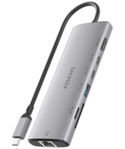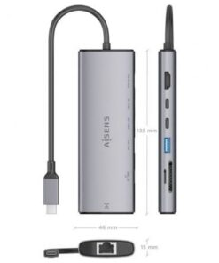 AISENS – USB-C DOCK 7 en 1, USB-C a 1xHDMI, 1xRJ45, 1xUSB-A 10G, 2xUSB-C 10G, 1xSD, 1xMICRO SD, GRIS, 20CM