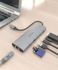 ASUC-7P032-GR – USB-C Dock 7 en 1, USB-C a 1xHDMI, 1xRJ45, 1xUSB-A 10G, 2xUSB-C 10G, 1xSD, 1xMicro SD, Gris, 20CM