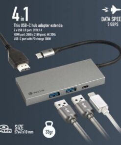 Adaptador multipuerto USB-C ultraligero de aluminio que incluye USB3.0, USB-C con carga PD, HDMI usando un solo puerto USB-C.