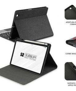 La carcasa posterior está hecha de material Termoplástico que además de ofrecer una gran protección contra los golpes también tiene la capacidad de bajar la temperatura del iPad mejorando su rendimiento. Podrás visualizar vídeos y películas ya que cuenta con múltiples ángulos de posición. En el molde exclusivo de fácil instalación, incorpora un espacio para transportar el Apple Pencil. Se puede acceder a todas las funciones de la Tablet incluso con la funda puesta gracias a unos ajustes exclusivos y perfectamente posicionados. La baterías de Litio de larga duración que incorpora el Teclado Bluetooth te permitirá trabajar durante largos periodos de tiempo y la puedes recargar mediante el puerto Type C
