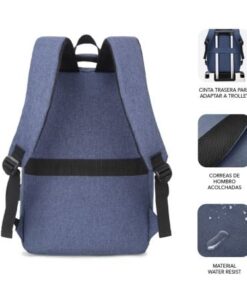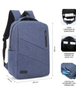 La mochila para portátil Subblim City Backpack de 15,6” resulta ‘imprescindible en todos tus viajes o desplazamientos. Facilita el ‘transporte de tu ordenador de forma segura gracias al exclusivo ‘compartimento acolchado así como los diferentes bolsillos para los ‘accesorios más utilizados y documentos. Su comodidad en el transporte ‘está asegurada gracias a sus correas para el hombro que distribuyen ‘uniformemente el peso en la espalda así como el asa de mano acolchada. ‘Con un diseño actual y funcional, ha sido fabricada con unos resistentes’ materiales que repelen el agua. Cuenta con un puerto externo de carga ‘USB para que puedas suministrar energía a tus dispositivos.