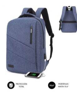 La mochila para portátil Subblim City Backpack de 15,6” resulta ‘imprescindible en todos tus viajes o desplazamientos. Facilita el ‘transporte de tu ordenador de forma segura gracias al exclusivo ‘compartimento acolchado así como los diferentes bolsillos para los ‘accesorios más utilizados y documentos. Su comodidad en el transporte ‘está asegurada gracias a sus correas para el hombro que distribuyen ‘uniformemente el peso en la espalda así como el asa de mano acolchada. ‘Con un diseño actual y funcional, ha sido fabricada con unos resistentes’ materiales que repelen el agua. Cuenta con un puerto externo de carga ‘USB para que puedas suministrar energía a tus dispositivos.