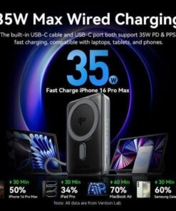 - Salida (cable USB-C integrado): 5V⎓3A; 9V⎓3A; 12V⎓2.5A; 15V⎓2.33A (35W Máx)