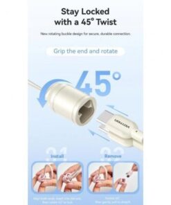 Alinea ambos extremos, insértalos en la ranura, luego gira 45º para bloquear.