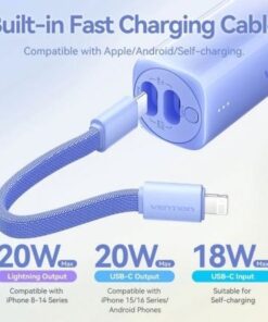 Seguro y conveniente: el puerto de carga está conectado de forma segura, lo que le permite llevar el banco de energía con la mano o sujetarlo fácilmente a su bolso usando el cordón integrado.