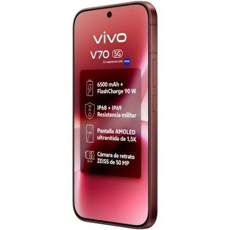 Cámara trasera principal: ZEISS de 50 MP con apertura f/1.88, enfoque automático, estabilización óptica OIS, zoom digital 10×, grabación de vídeo 4K y 1080p