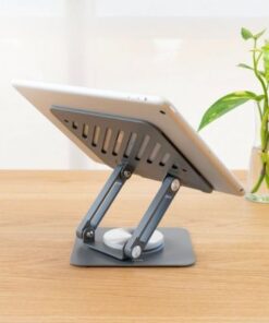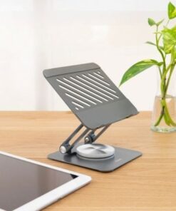 ‘Soporte Elevador con rotación 360° y ajustable, para dispositivos de hasta 13”, Gris Oscuro