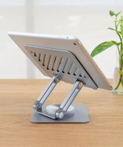 ‘Soporte Elevador con rotación 360° y ajustable, para dispositivos de hasta 13”, Plata