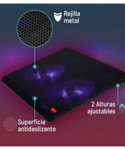 - Soporte de refrigeración para portátiles de hasta 15,6” e iluminación LED azul.